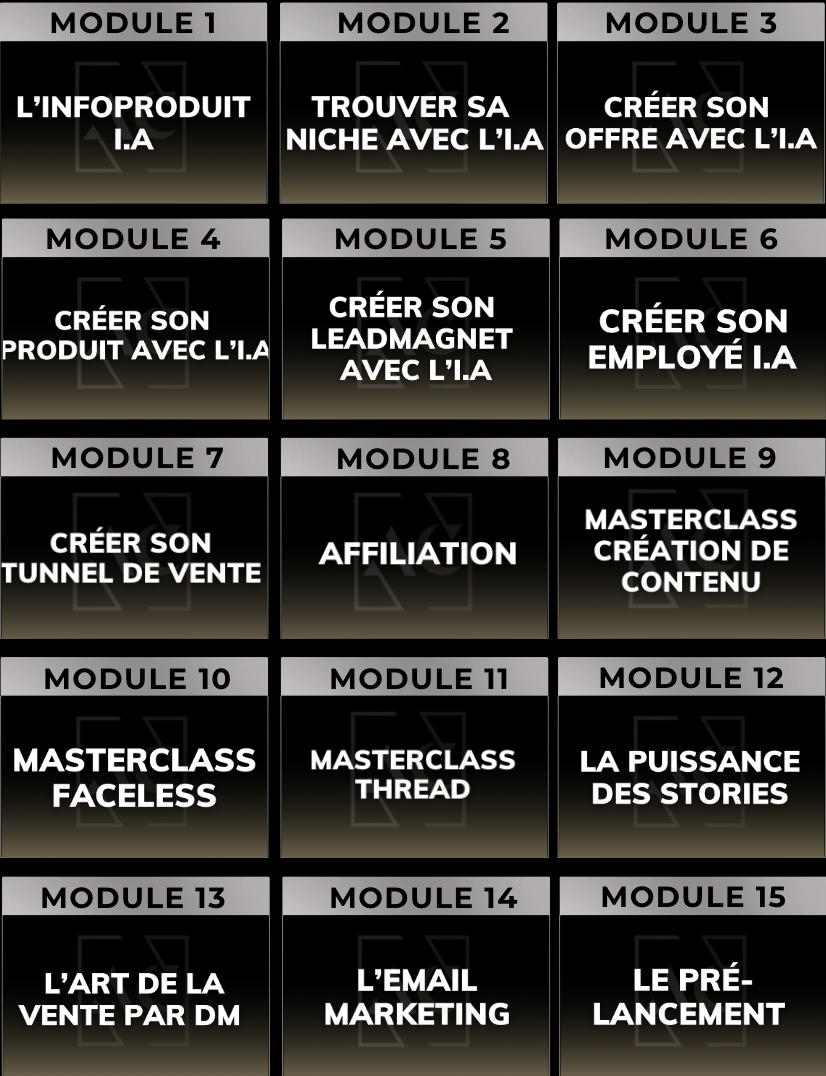 Un programme composé de 15 modules vidéos dont tu auras accès immédiatement !
