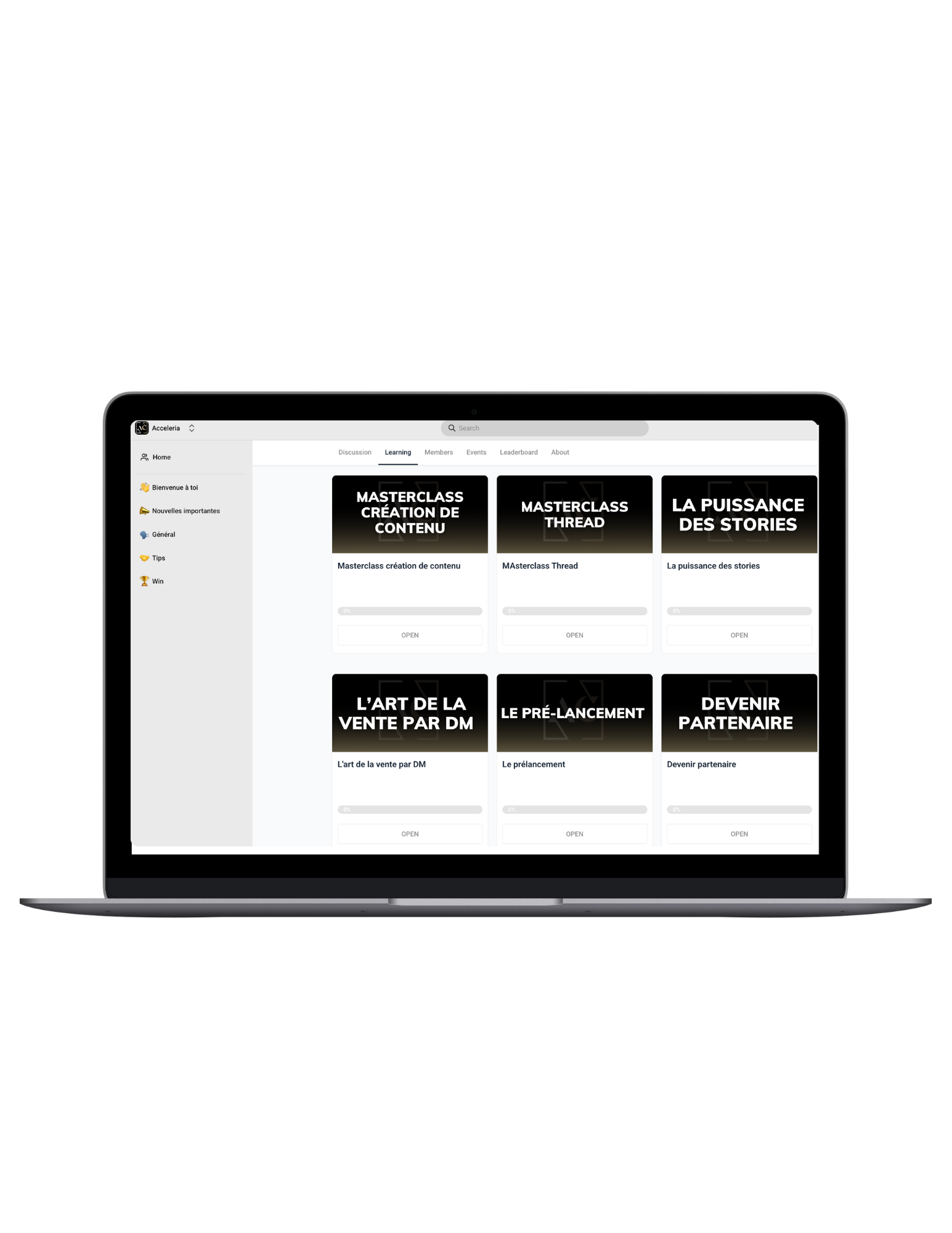 Rejoins le programme complet Acceleria et accède immédiatement à tous ces éléments À VIE !